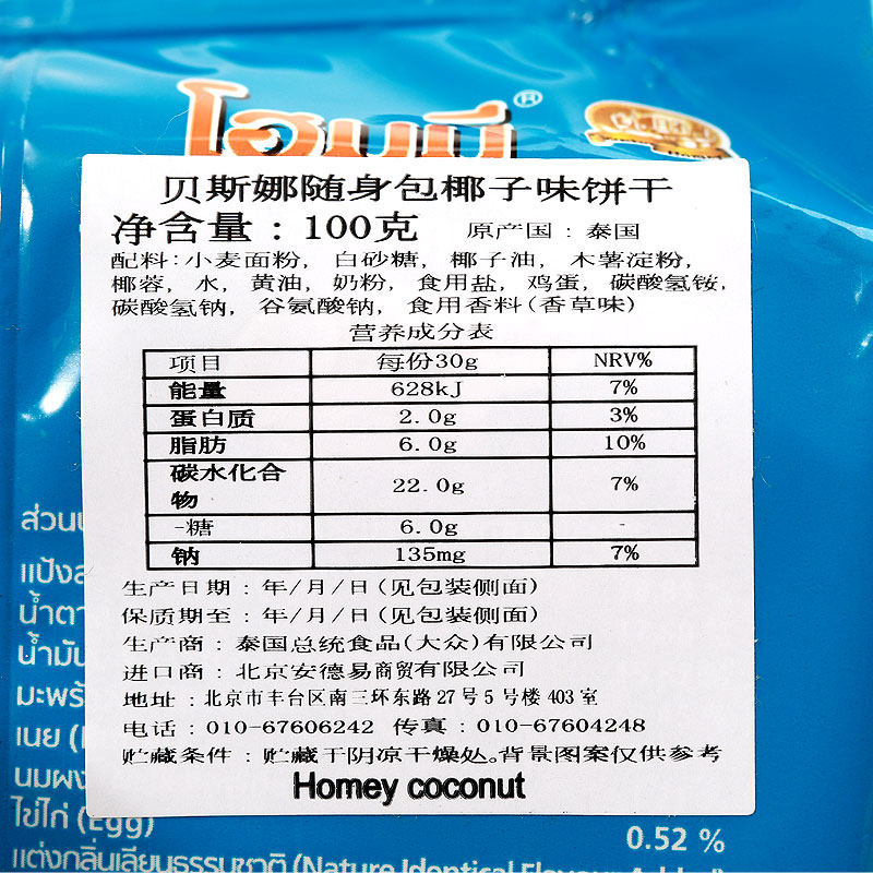 泰国进口贝斯娜随身包饼干100gx6包办公室宿舍休闲零食饱腹多口味