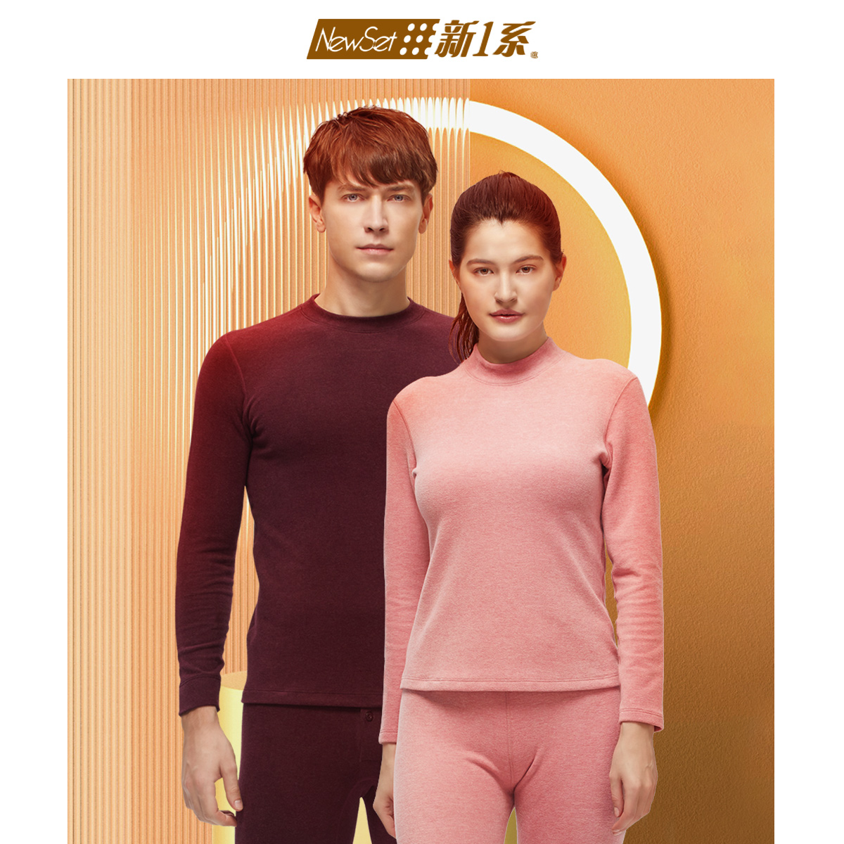 新一系A9羊毛贴片男士半高领加绒加厚秋衣秋裤保暖打底内衣套装冬
