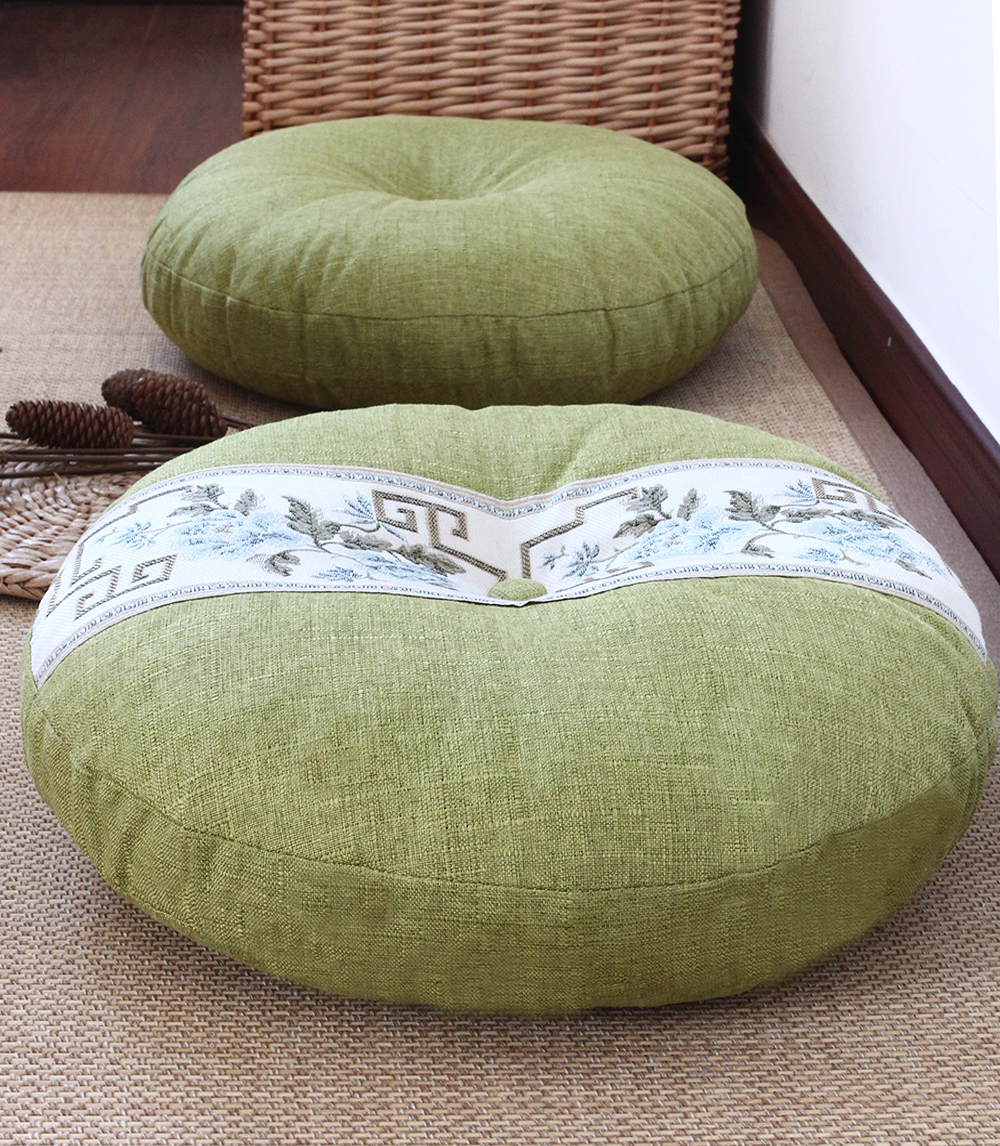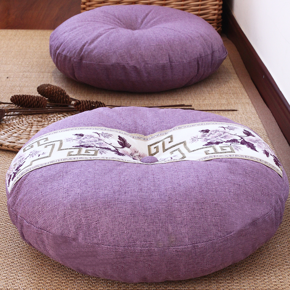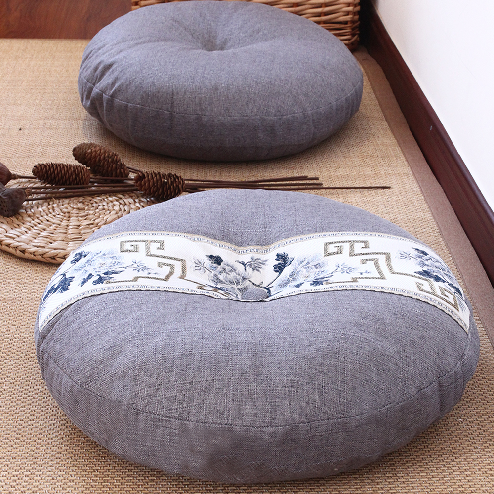 亚麻蒲团坐垫加厚圆形布艺阳台日式榻榻米打坐垫飘窗瑜伽懒人坐垫