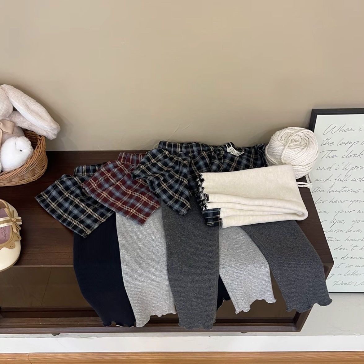 女童冬季加绒打底裤女宝宝韩系新款格子屁帘百搭一体绒加厚长裤潮