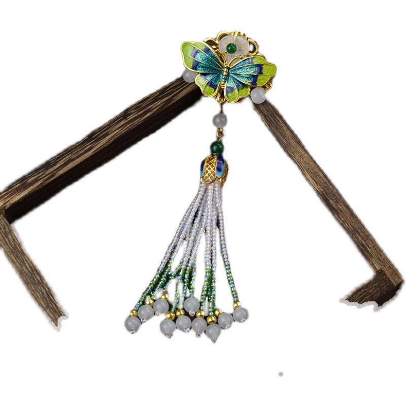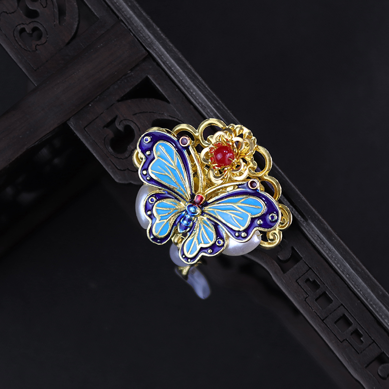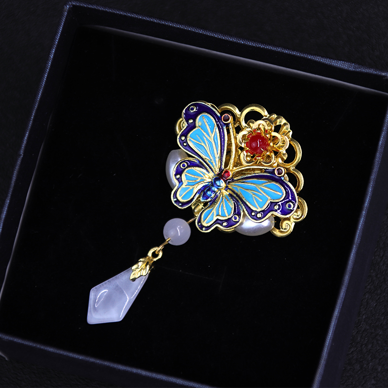 原创设计景泰蓝烧蓝蝴蝶压襟复古中国风领口别针旗袍胸花挂件配饰
