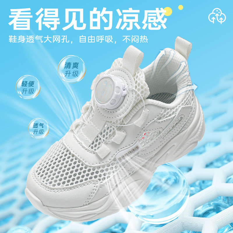 巴布豆童鞋儿童网鞋男童夏季网面透气运动鞋2025新款校园小白鞋女