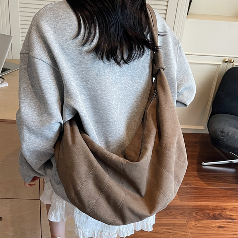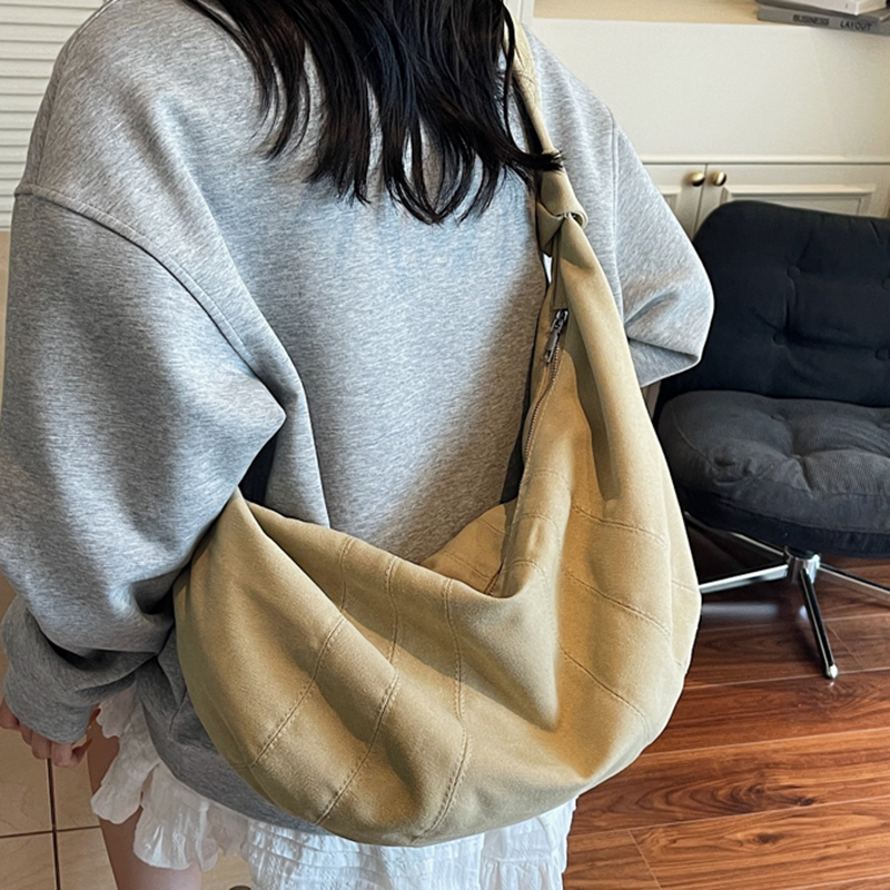 斜挎包女大容量韩系慵懒风高颜值单肩包百搭通勤帆布包纯色饺子包