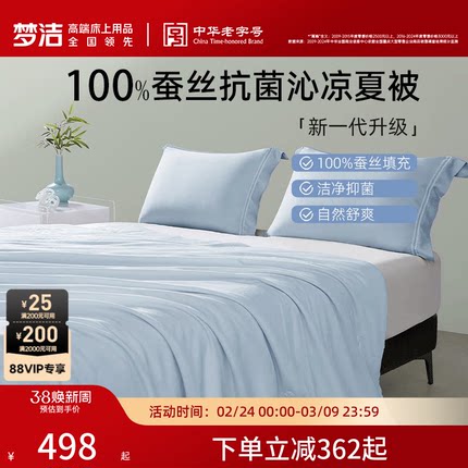 梦洁家纺100蚕丝被子夏凉被空调被被子被芯凉感夏被抗菌2026新款