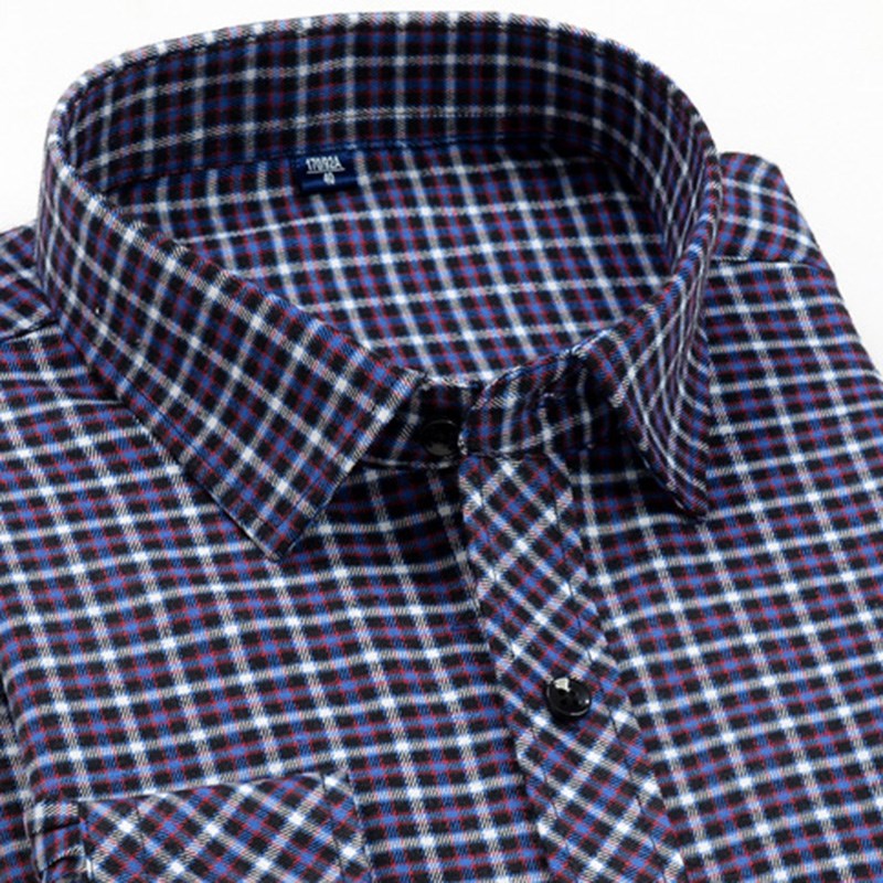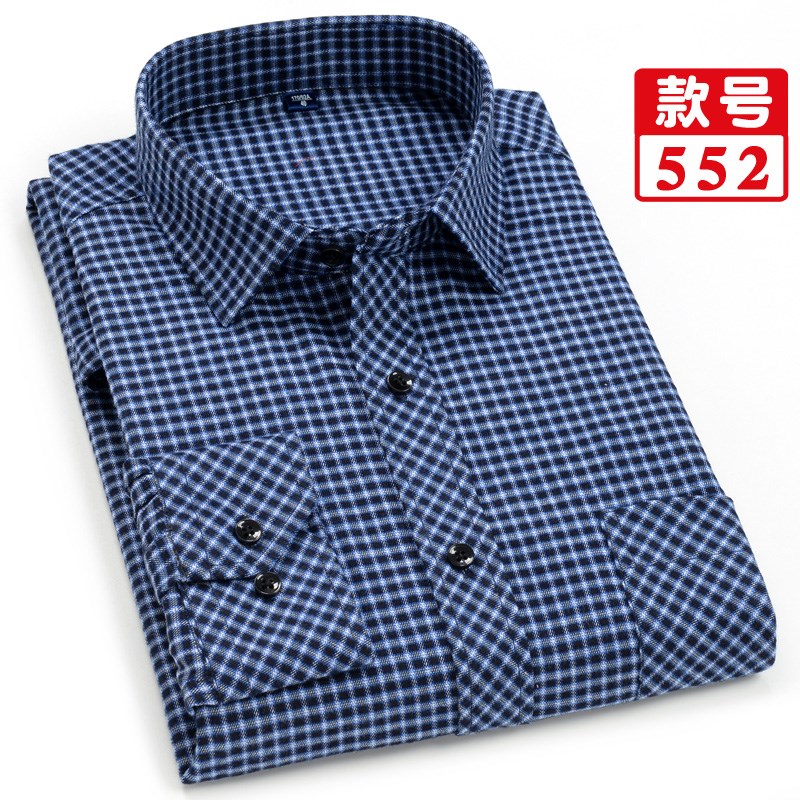 秋季纯棉小格子衬衫男长袖中老年爸爸款休闲免烫宽松衬衣全棉上衣