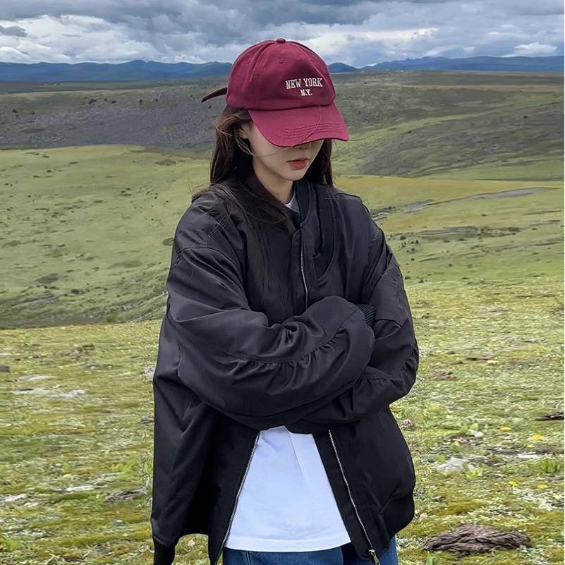 美式棒球服夹棉外套女春秋2025新款大码薄款休闲短款夹克加厚棉服
