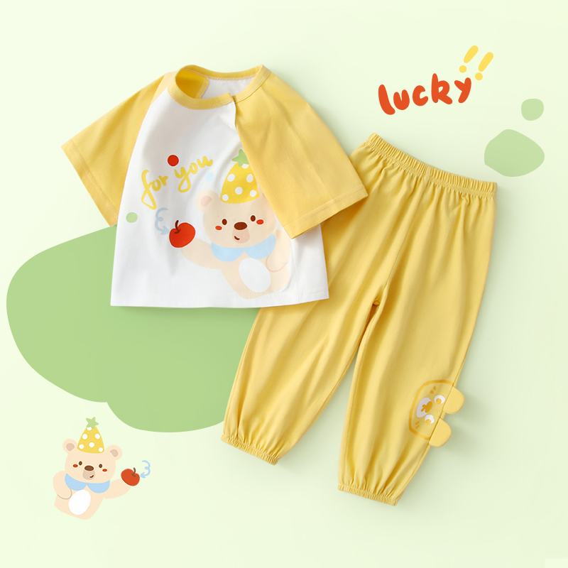 宝宝短袖套装薄款男童夏日长裤纯棉套装婴儿夏季女童衣服2025新款