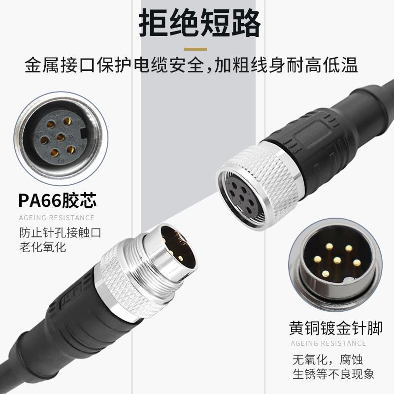 M16航空插头传感器公母对接插头连接线 4芯5芯8芯12针防水连接器