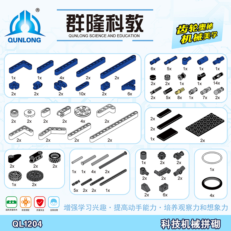 群隆科教儿童机械益智拼装积木玩具男孩工程齿轮科技系列培训教育