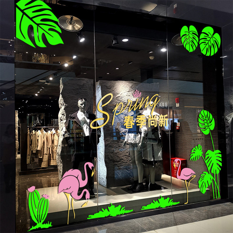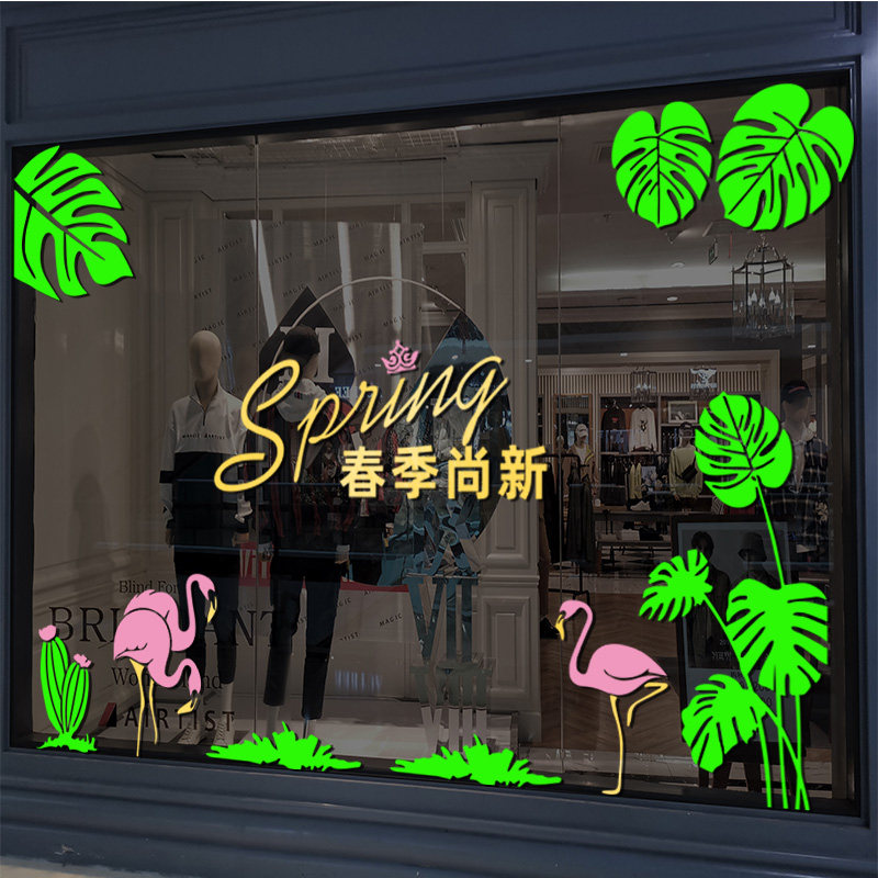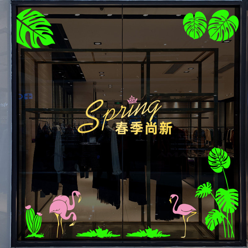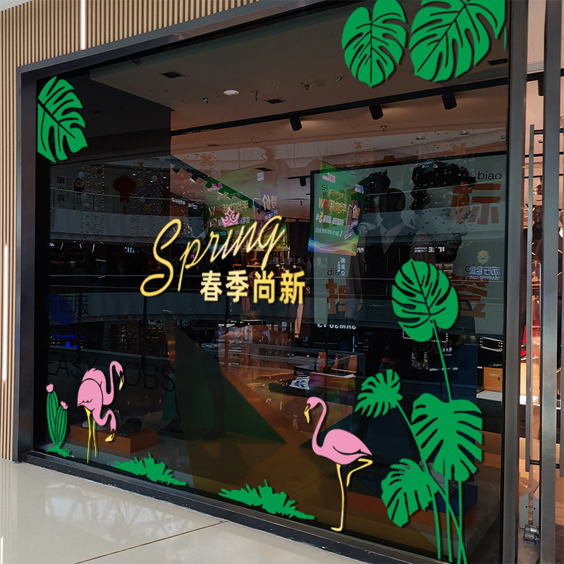 2020春季新品商场服装店铺玻璃贴纸春天绿叶装饰女装鞋包店橱窗贴