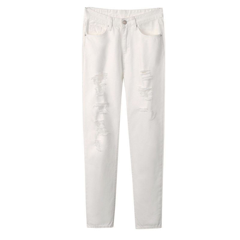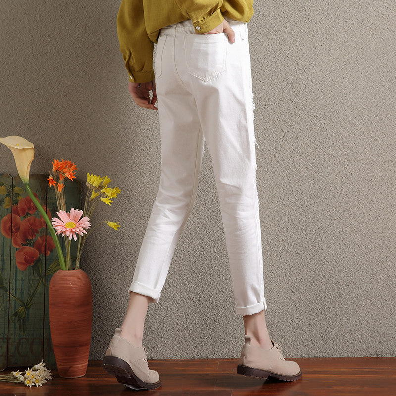 白色破洞牛仔裤女九分裤超柔软春秋新款百搭哈伦宽松9分小脚裤韩