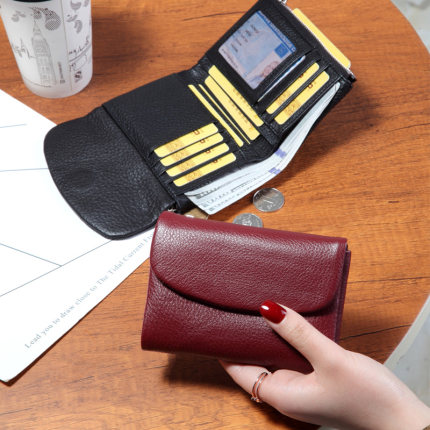 时尚真皮短款折叠钱夹女气质拉链零钱包头层软牛皮三折皮夹小钱包