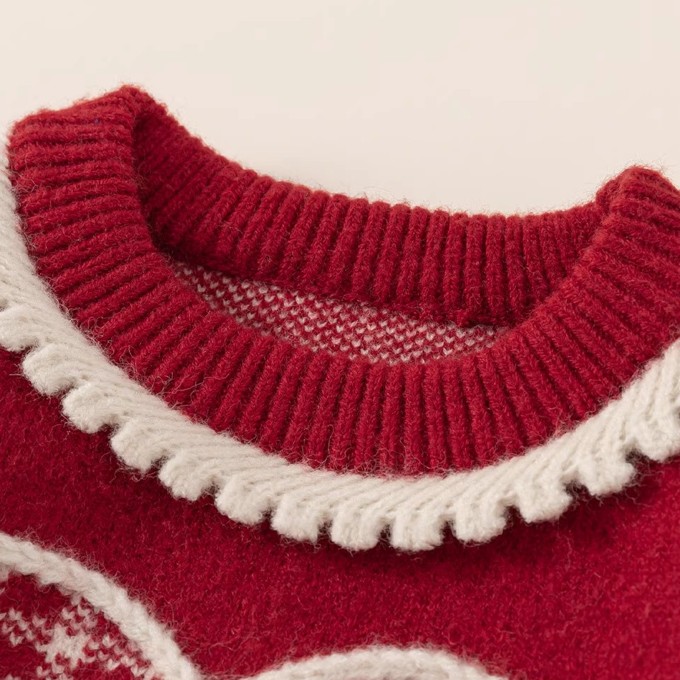 【冬】儿童上衣(花边圆领绣花图案套头毛衣)DY25161