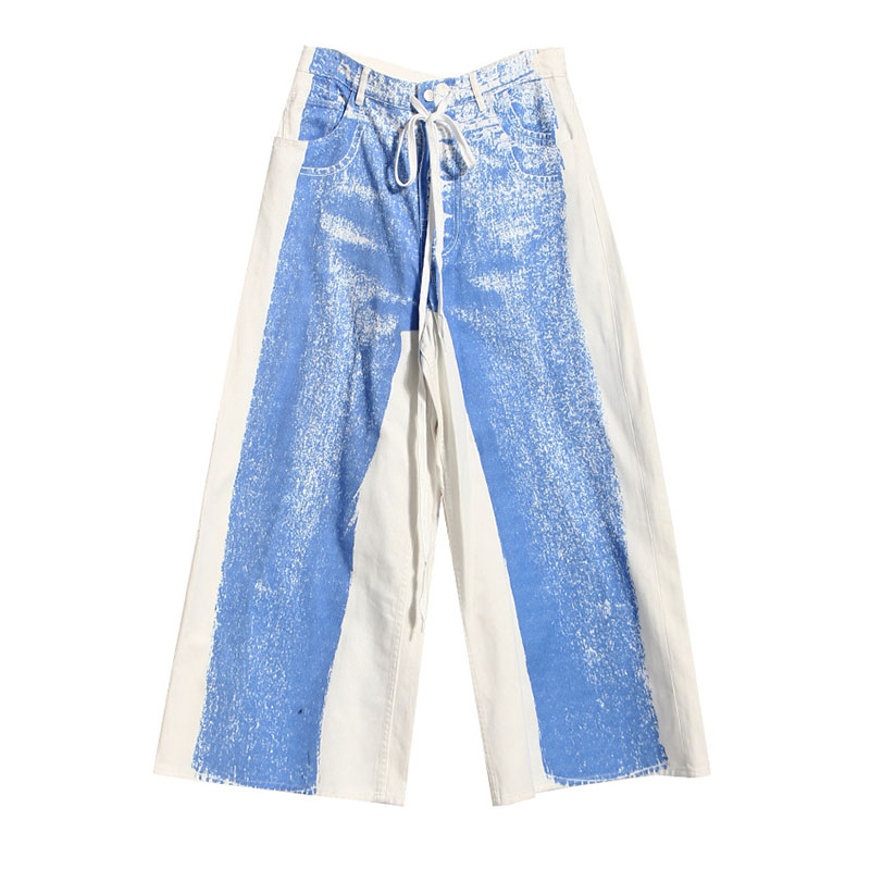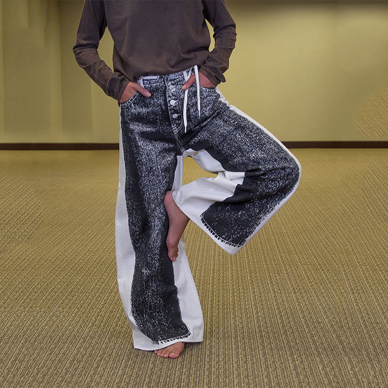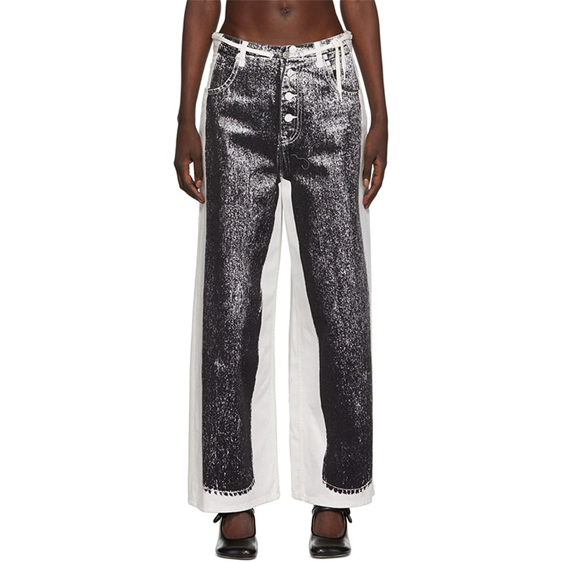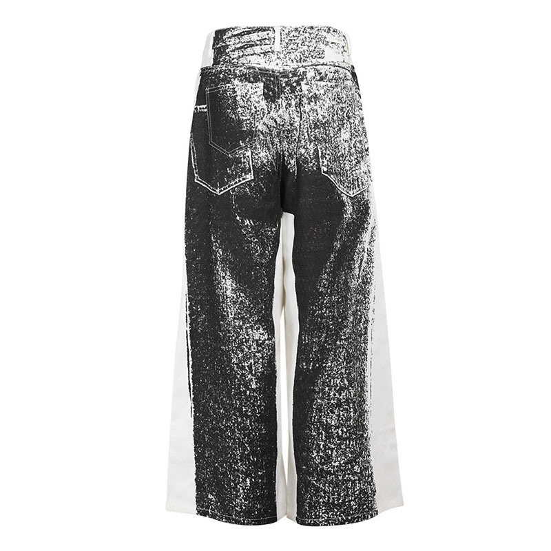 EAM STUDIO baggy风黑白撞色印花牛仔裤女春秋直筒宽松阔腿九分裤