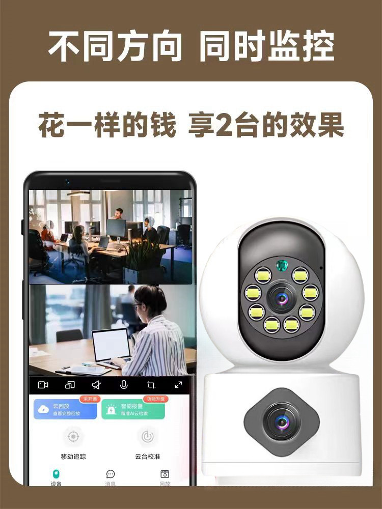 360度全景无死角监控器无线家用手机远程双画面摄像头