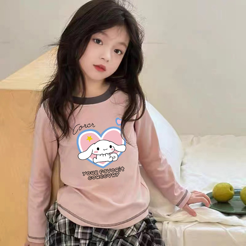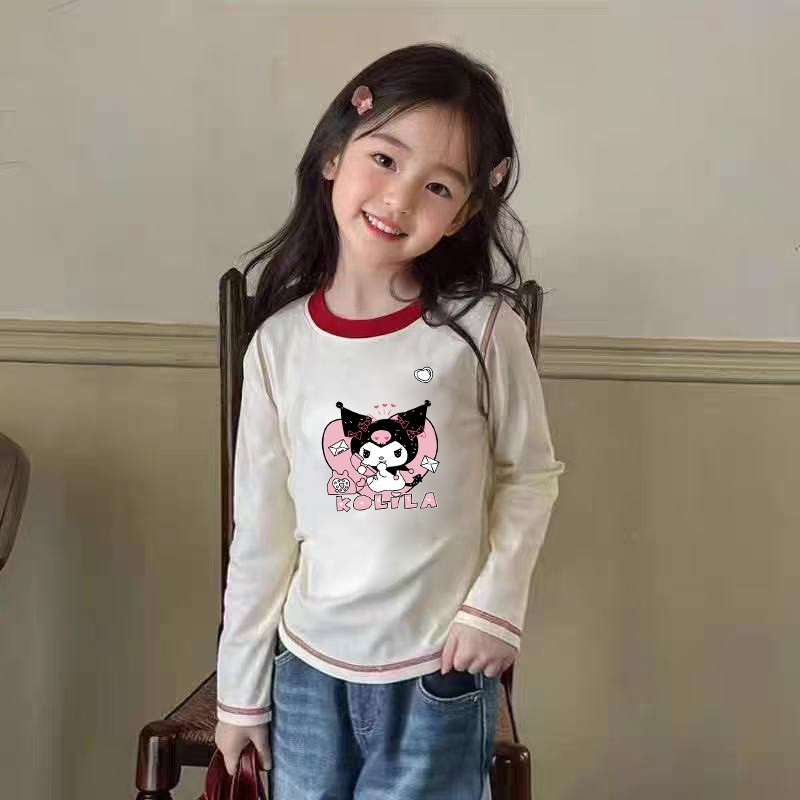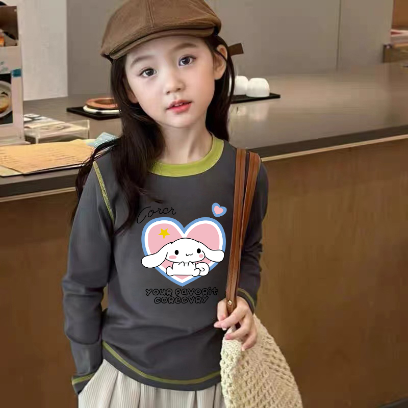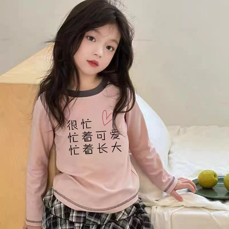 纯棉女童圆领长袖t恤2025春秋中大儿童宝宝洋气时尚印花打底上衣