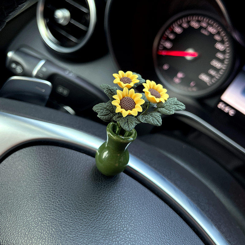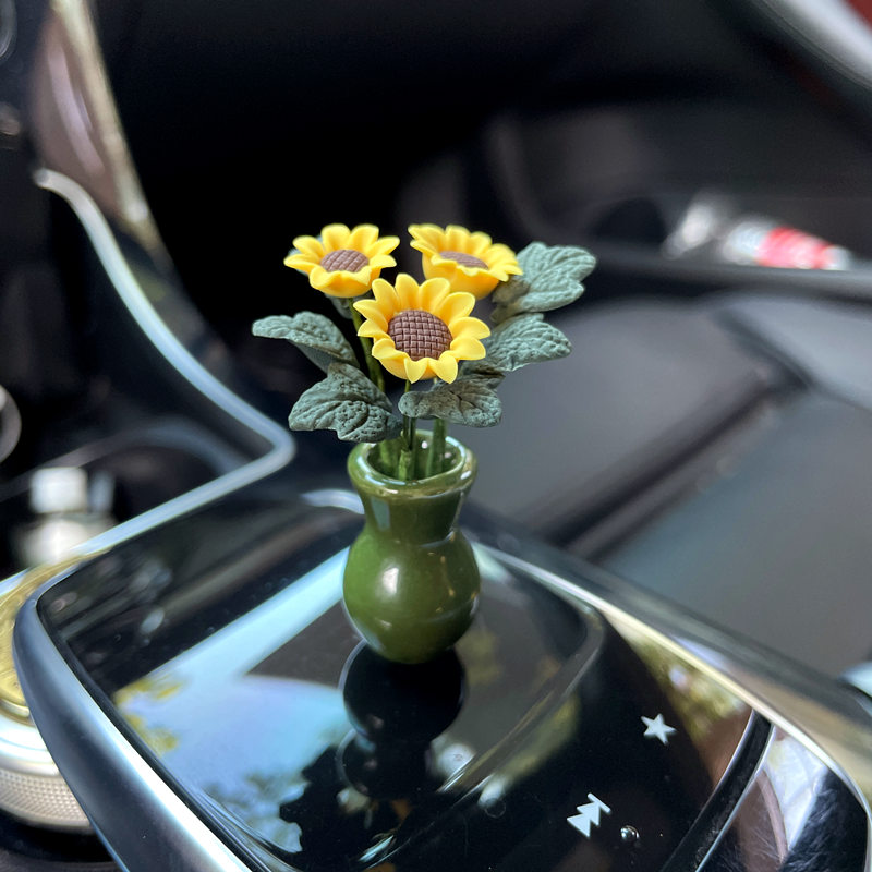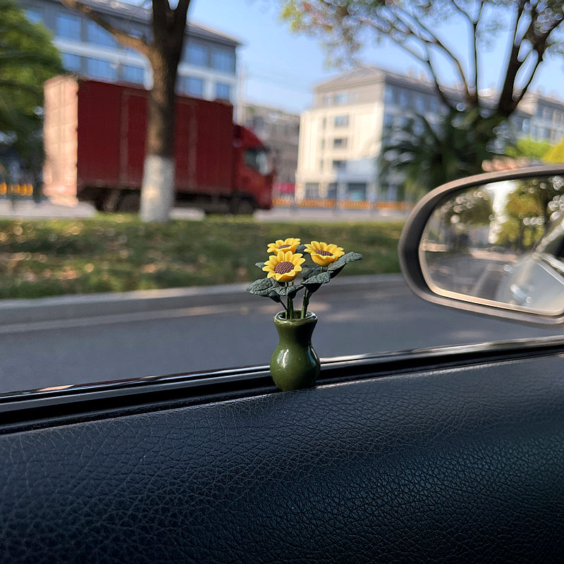 汽车摆件墨绿花瓶向日葵车内饰品车载中控台文Q艺复古车内装饰用
