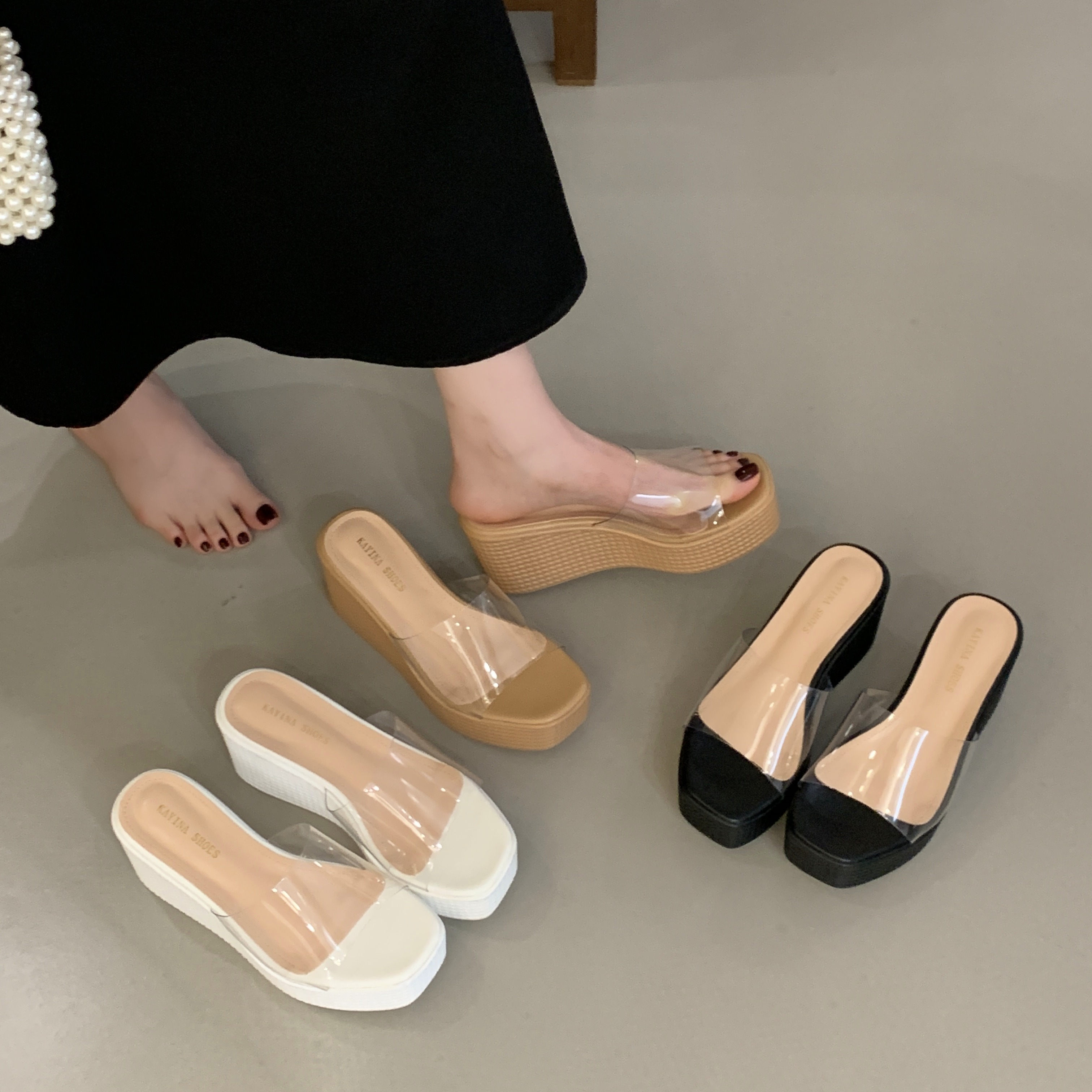 透明鱼嘴厚底坡跟凉拖鞋女外穿夏季新款松糕防水台百搭高跟凉鞋女