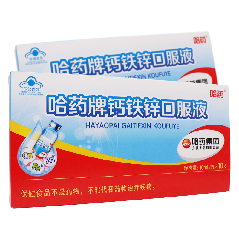 哈药三精钙铁锌口服液蓝瓶补钙铁锌孕妇儿童成人补锌液体钙溶液