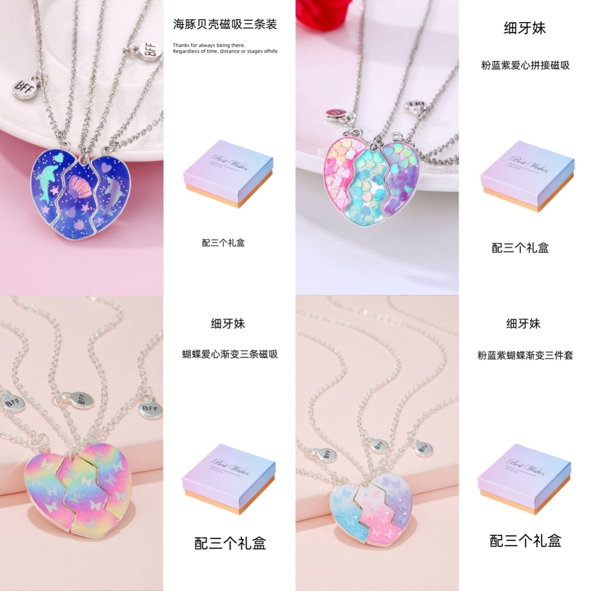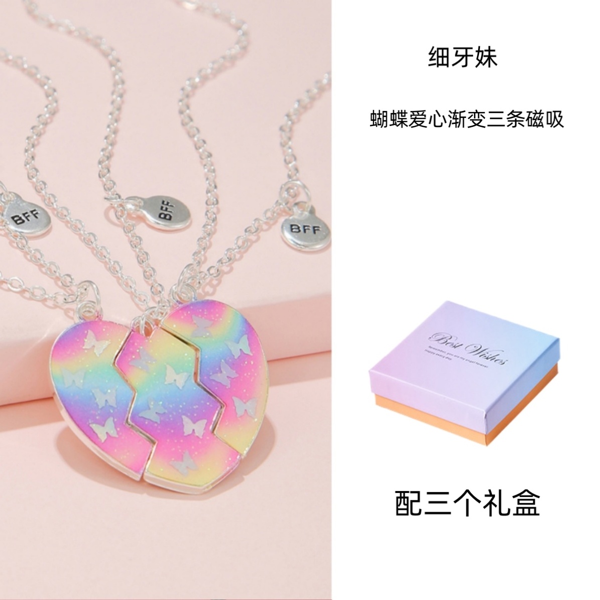 爱心蝴蝶三人闺蜜项链磁吸学生好朋友2025新款儿童高级感生日礼物