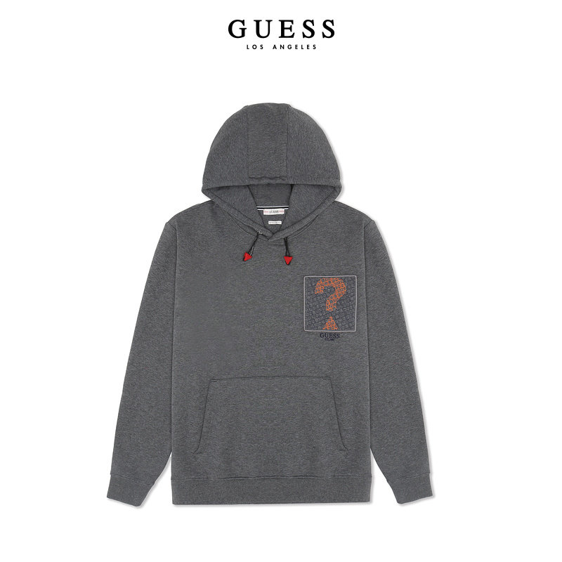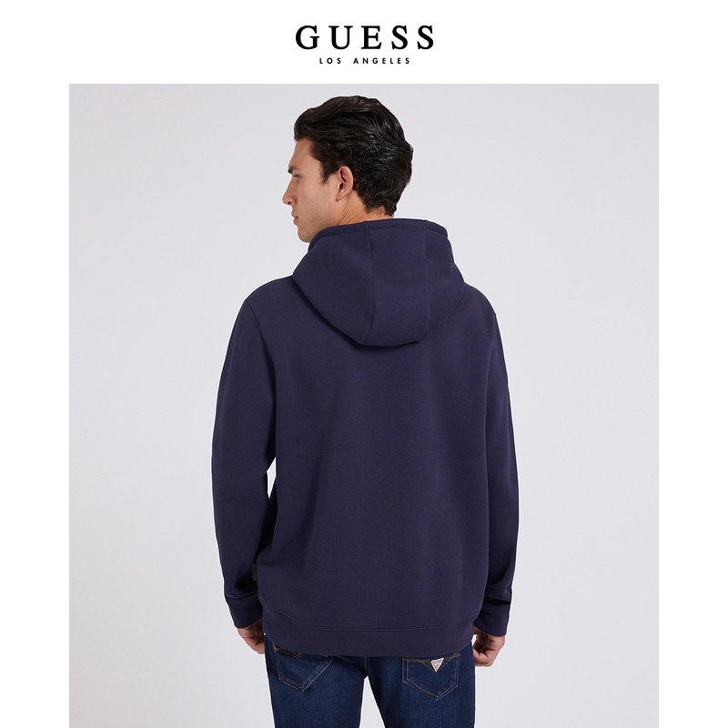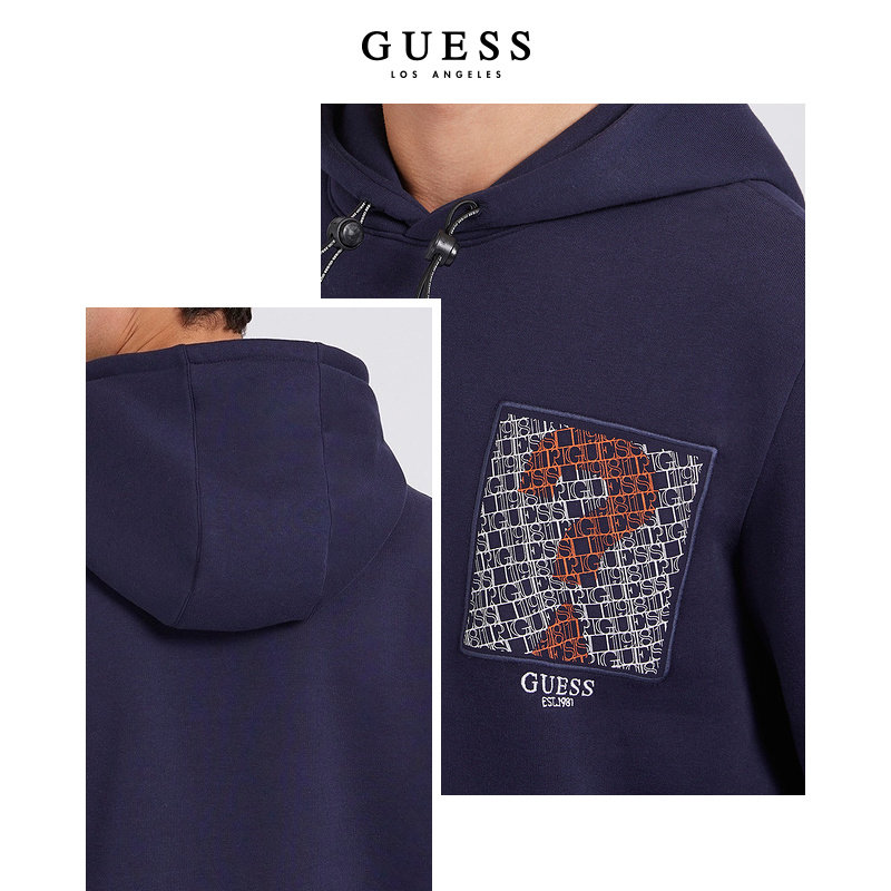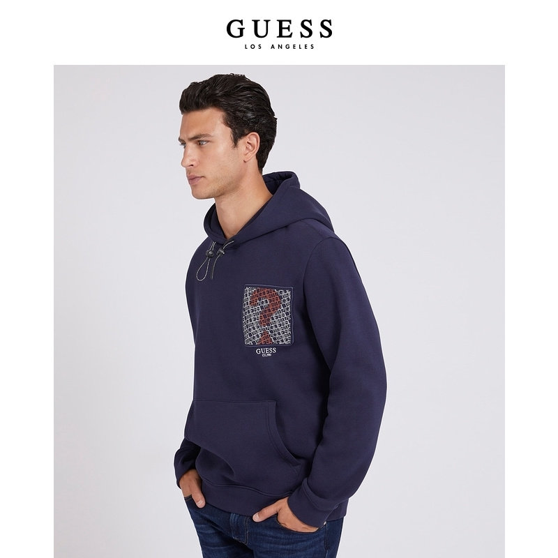 GUESS男连帽抽绳套头卫衣长袖运动宽松帽衫-