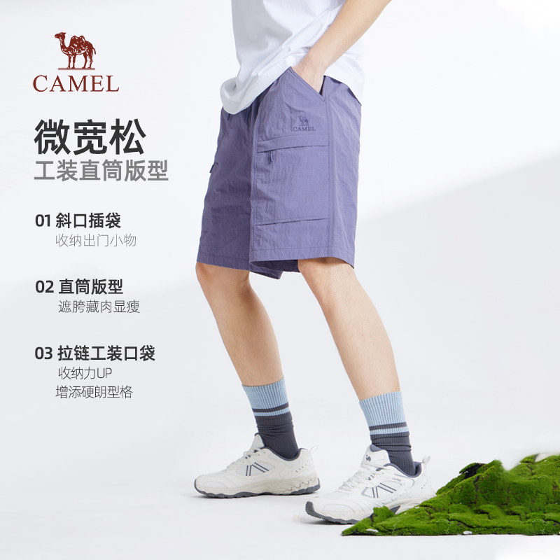 骆驼男装凉感工装短裤男2025新款夏季防晒宽松直筒速干休闲五分裤