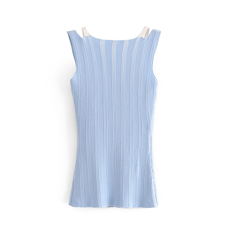 欧美女装 欧美风博主款性感V领假两件针织背心ins风修身外穿吊带