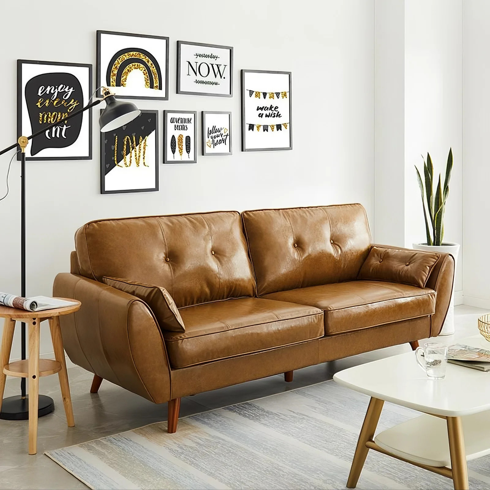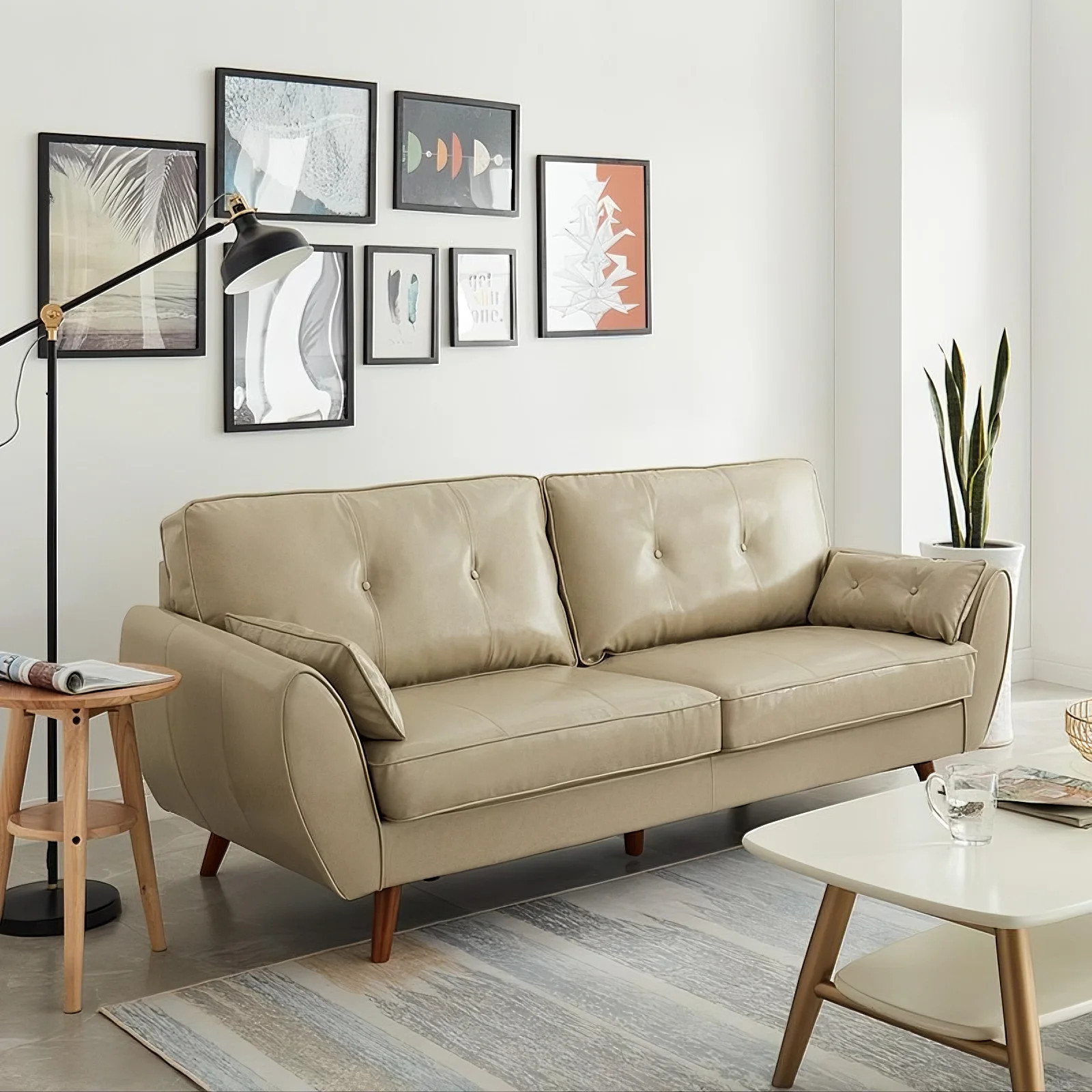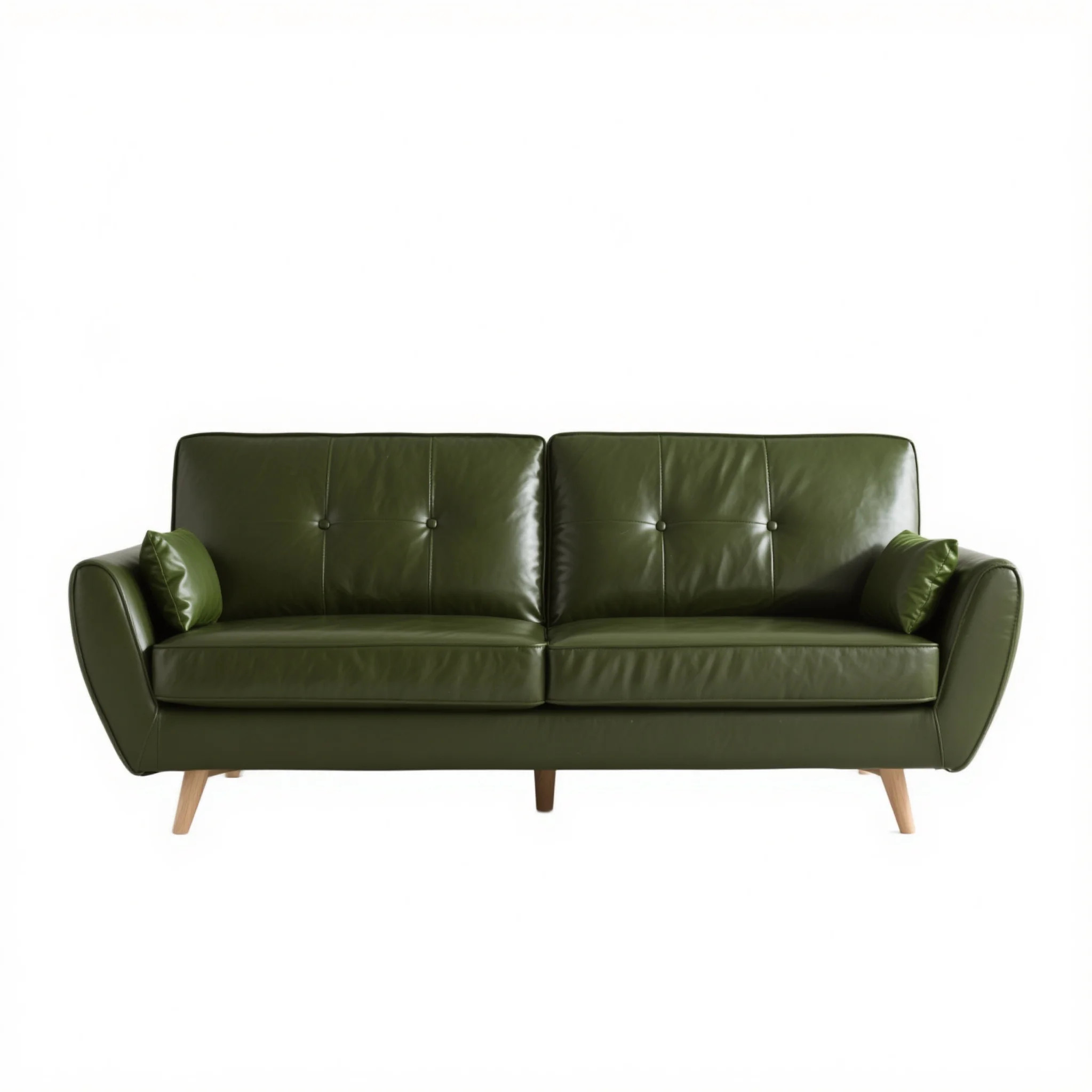 日式公寓现代简约小户型客厅loft整装原单真皮沙发复古墨绿油蜡皮