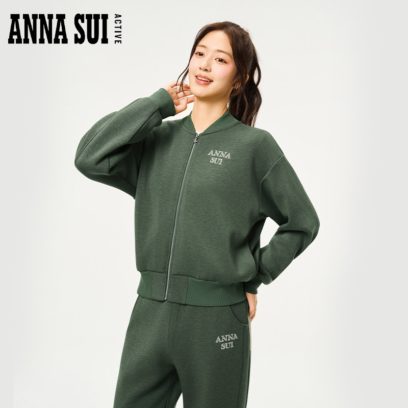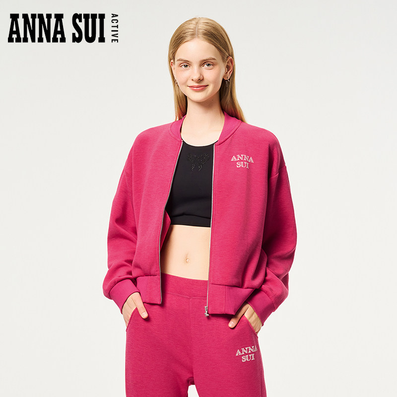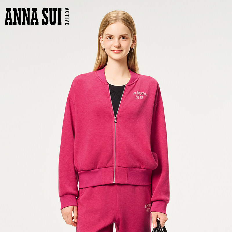 ANNA SUI安娜苏运动 棉花糖系列 落肩棒球领休闲廓形长袖针织外套