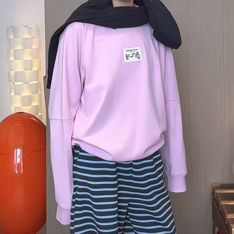 韩系复古长袖卫衣女秋冬季宽松显瘦百搭打底衫可爱减龄粉色上衣潮