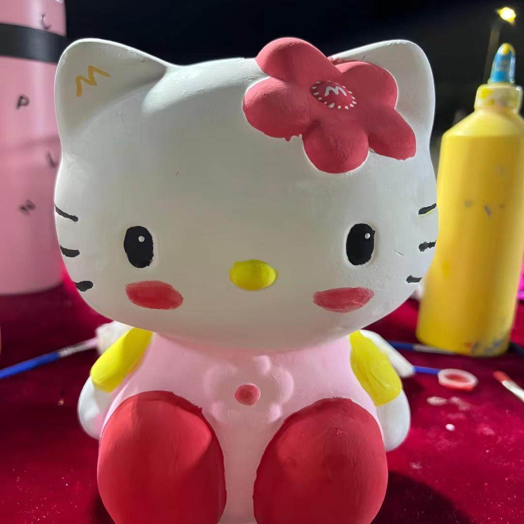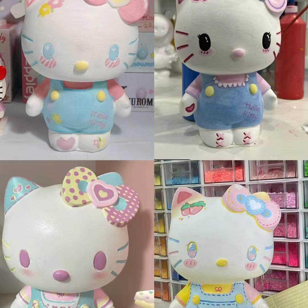 新款苹果海盐KT猫石膏娃娃diy儿童存钱罐kitty猫大号涂鸦手工彩绘