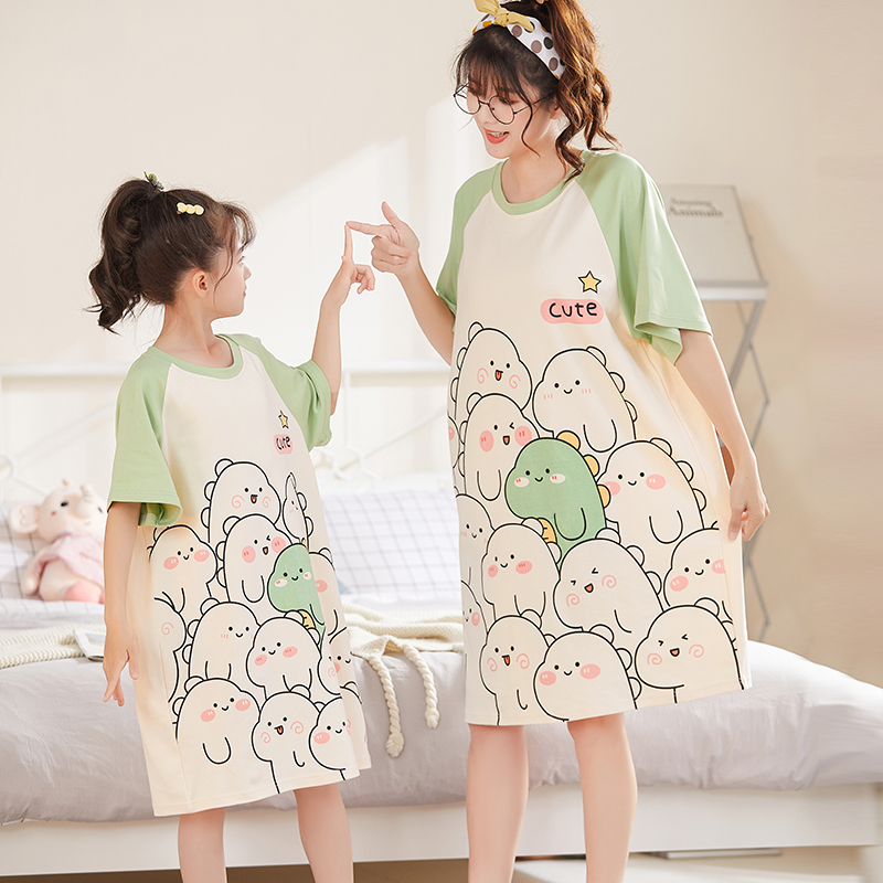 亲子睡裙夏季短袖长裙薄款套装儿童家居裙纯棉夏天宝宝女童母女装