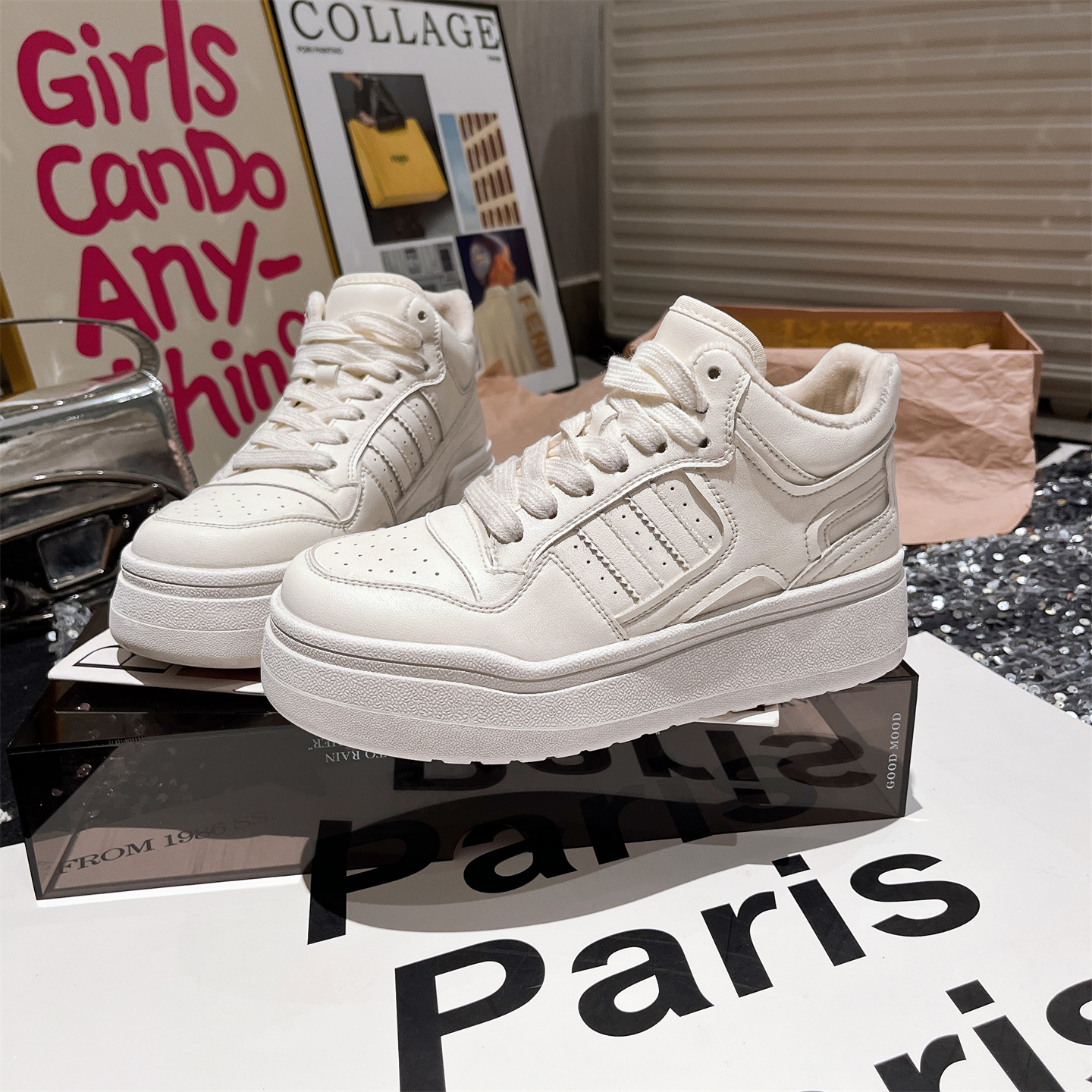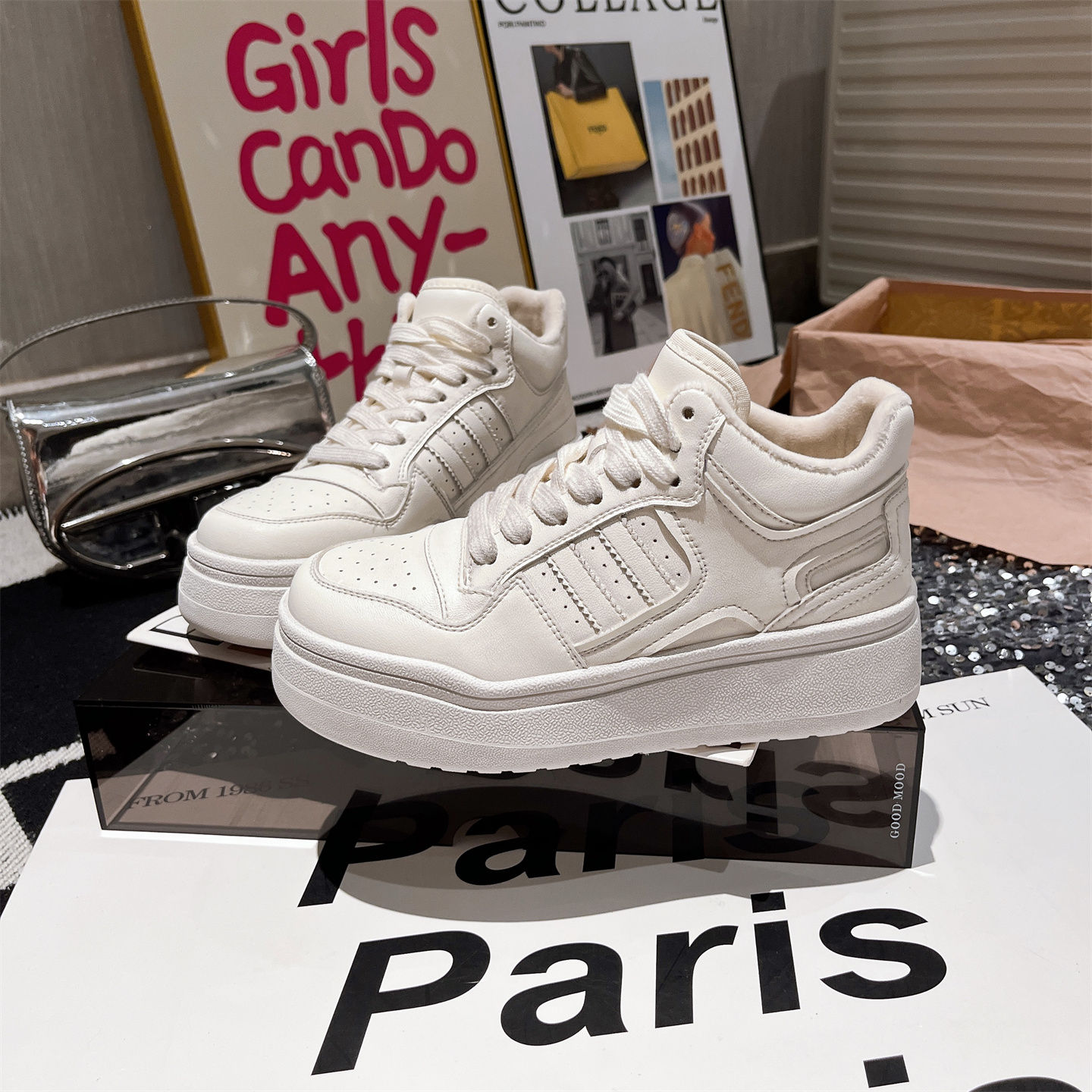 2025新款真皮加绒休闲鞋板鞋高帮鞋平底鞋百搭德训鞋运动小白鞋女