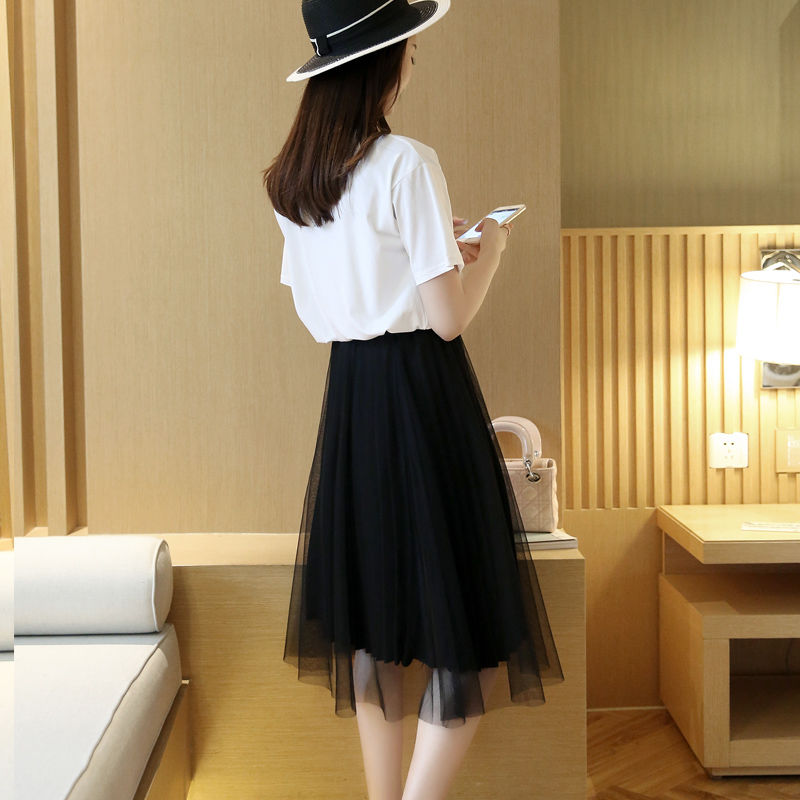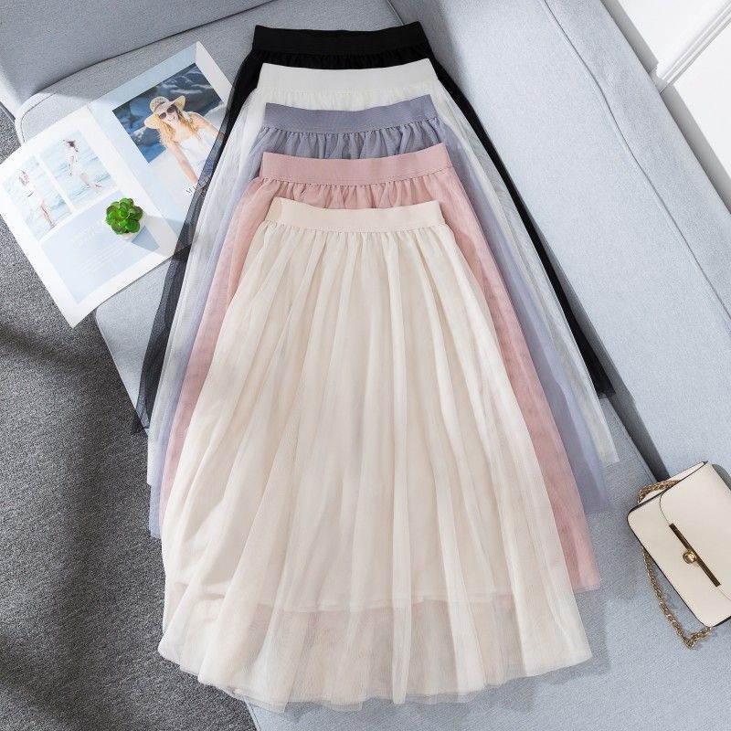 网纱裙女春秋季2025新款垂感高腰显瘦褶皱a字小个子中长款半身裙