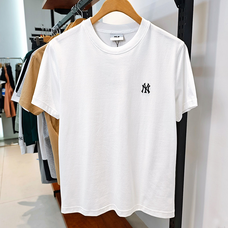 MLB情侣短袖25新款NY刺绣小标百搭透气男女半袖运动T恤3ATSB0153