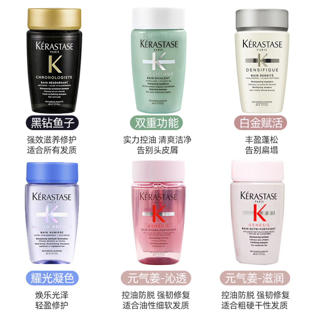 卡诗黑钻钥源系列元气姜白金双重控油鱼子酱洗发水小样80ml旅行装