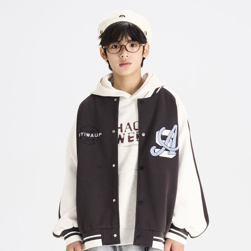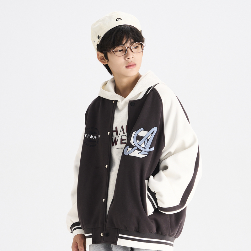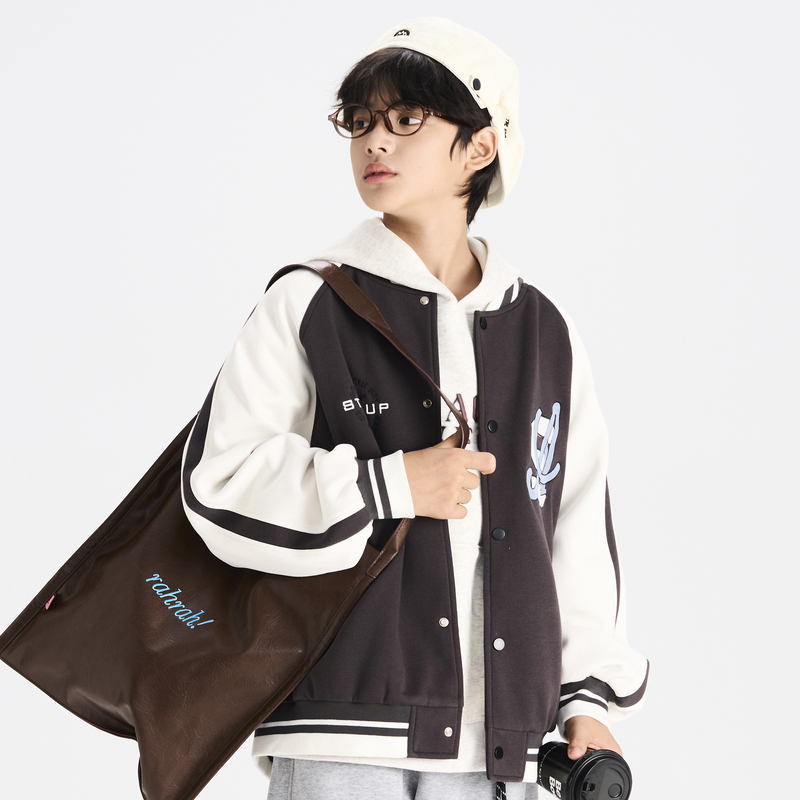 多多一上新秋款男大童棒球领印花外套开衫百搭男童棒球服外套