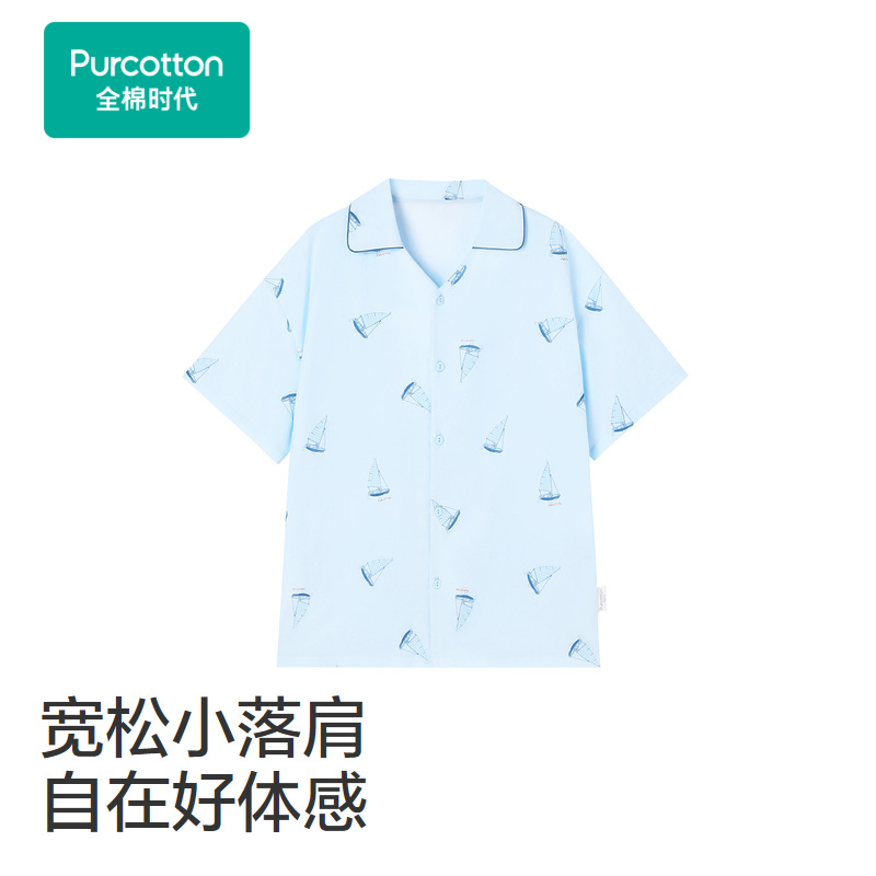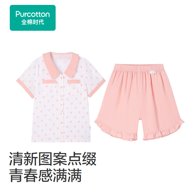全棉时代男女童100%棉双层纱布家居服儿童短袖短裤睡衣裤两件套装