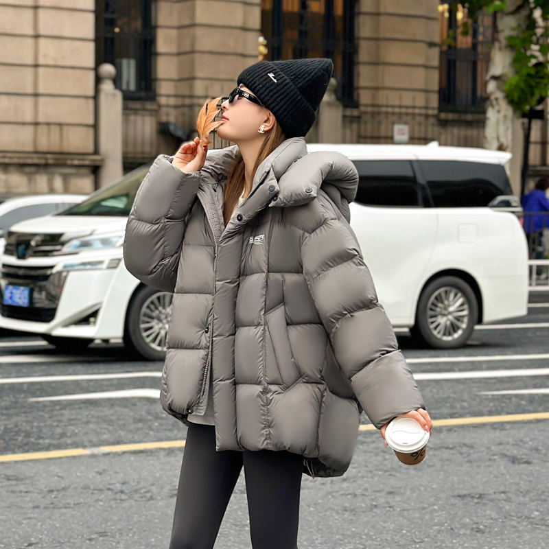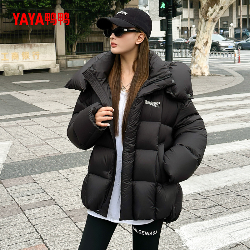 鸭鸭YAYA羽绒服女冬季新款短款连帽加厚气质90鸭绒宽松休闲外套