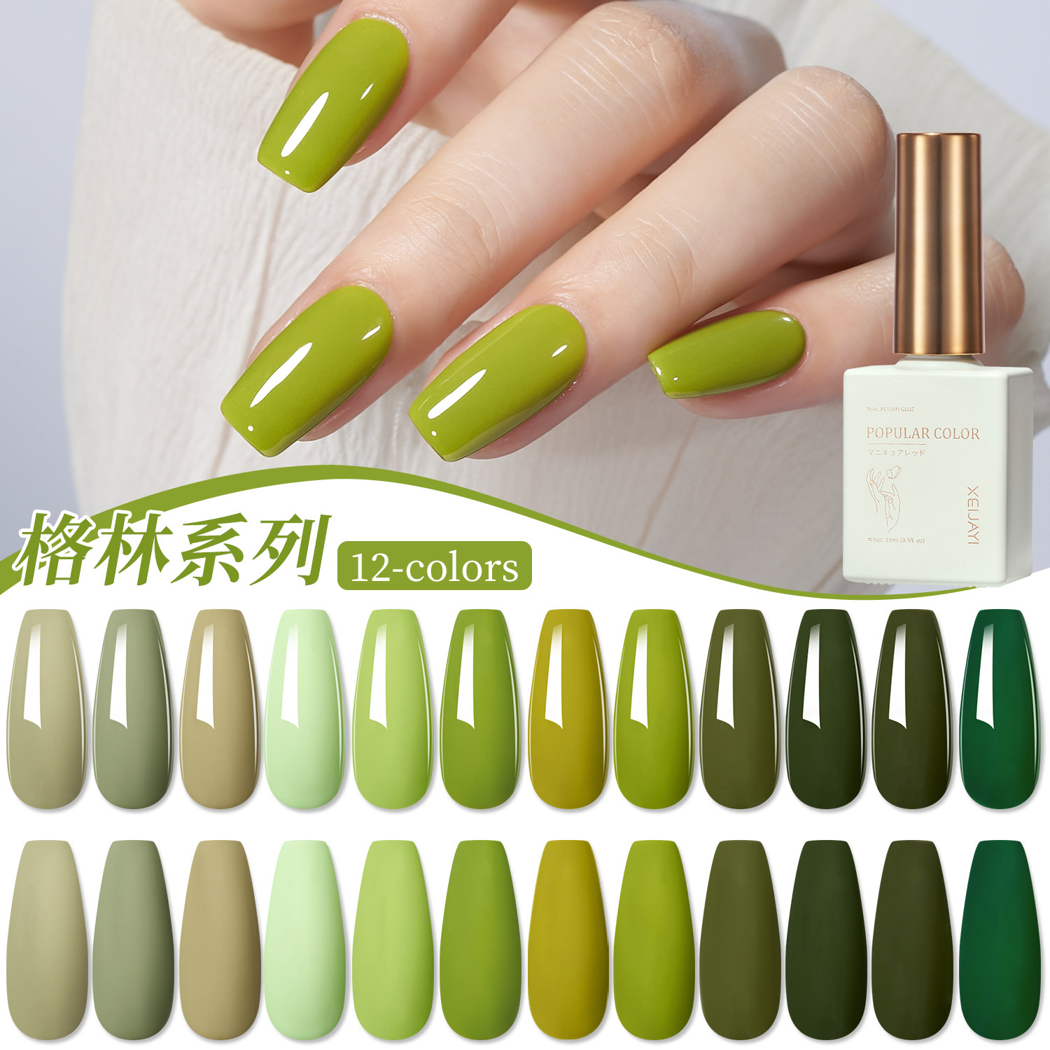 格林系列12色美甲甲油胶当季流行春夏草绿牛油果绿15ml高级光疗胶