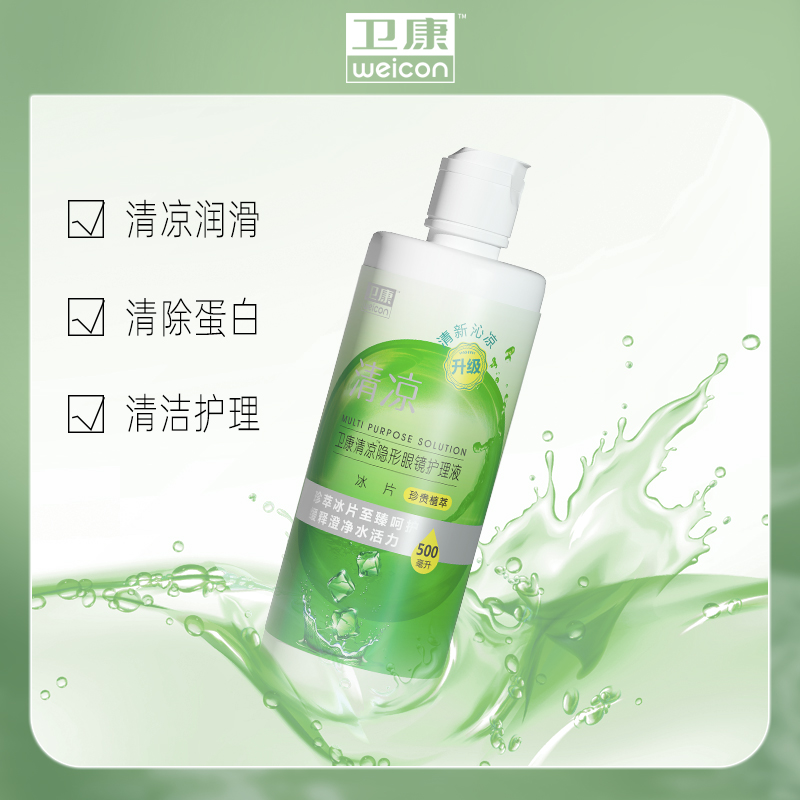 卫康清凉护理液500*2+125ml隐形近视眼镜清洗液旗舰店官网正品JX