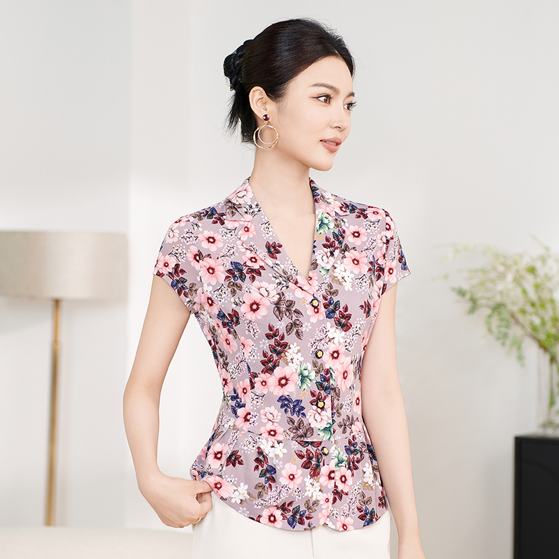 香沐兰妈妈夏2025新款女装时尚百搭短袖修身衬衫洋气品味妈妈衣服