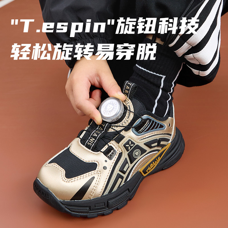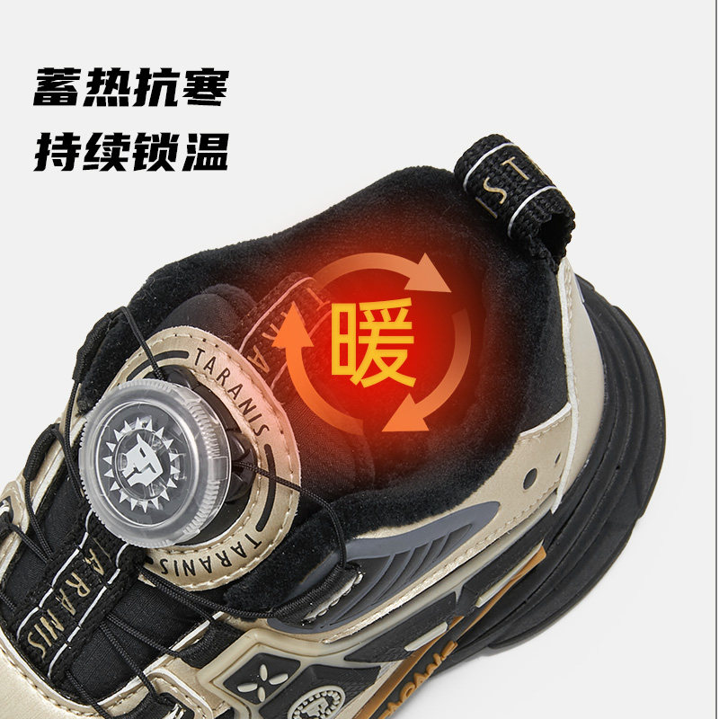 泰兰尼斯儿童运动鞋冬季新款男童跑步鞋加绒保暖老爹鞋时尚旋钮扣