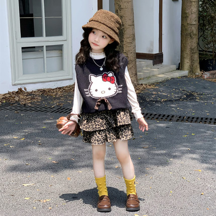 女童韩版针织马甲套装2026春季新款儿童洋气打底衫背心女宝宝短裙