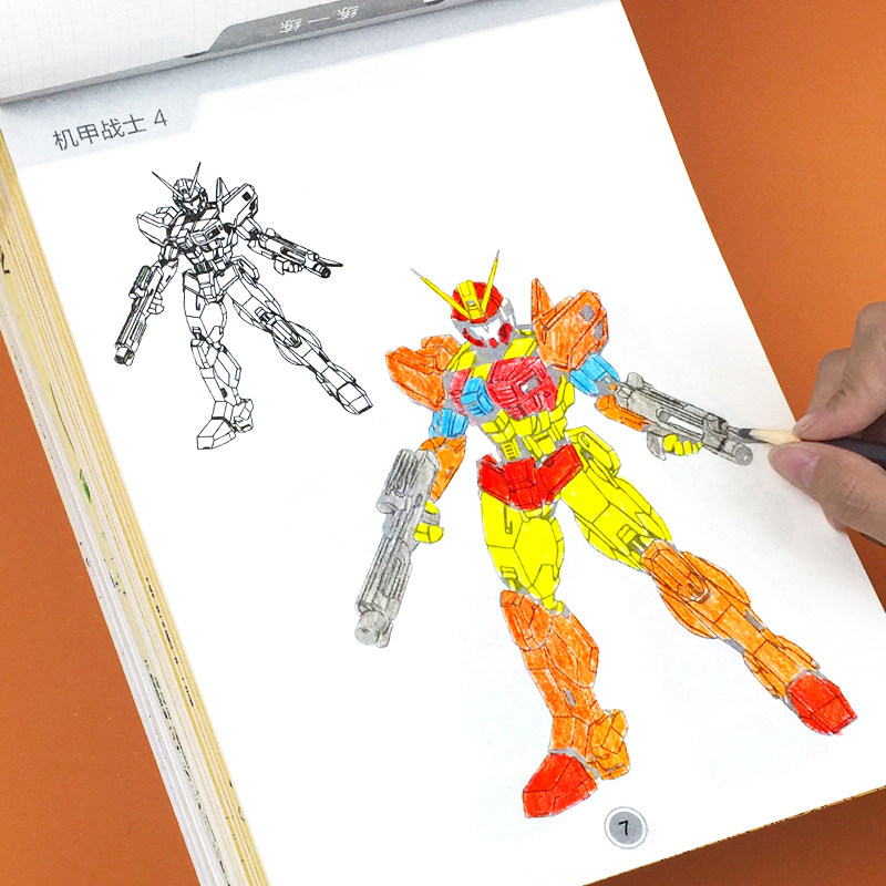 漫画手绘机甲勇士线稿描摹本坦克q版女孩古风儿童简笔画描摹本