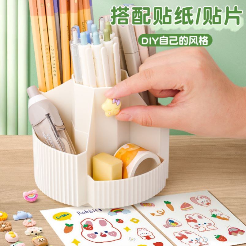 三年二班旋转笔筒学生桌面收纳盒高颜值大容量儿童可爱创意多功能