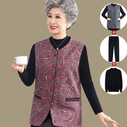 中老年女式马夹春秋老人奶奶衣服妈妈秋装老太太马甲坎肩大码背心