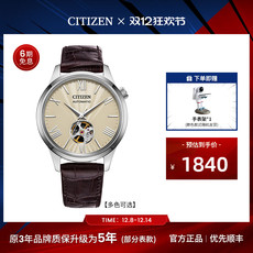 西铁城官旗商务休闲黑金色皮带机械男表NJ0133-12E