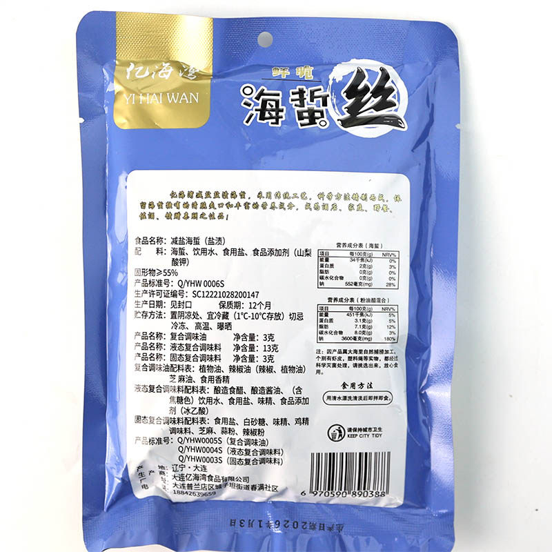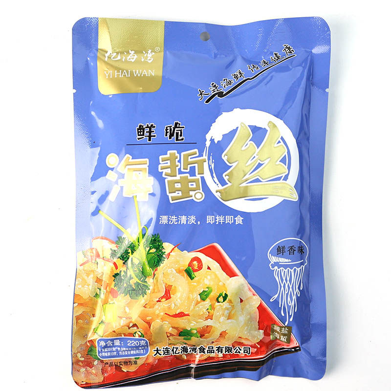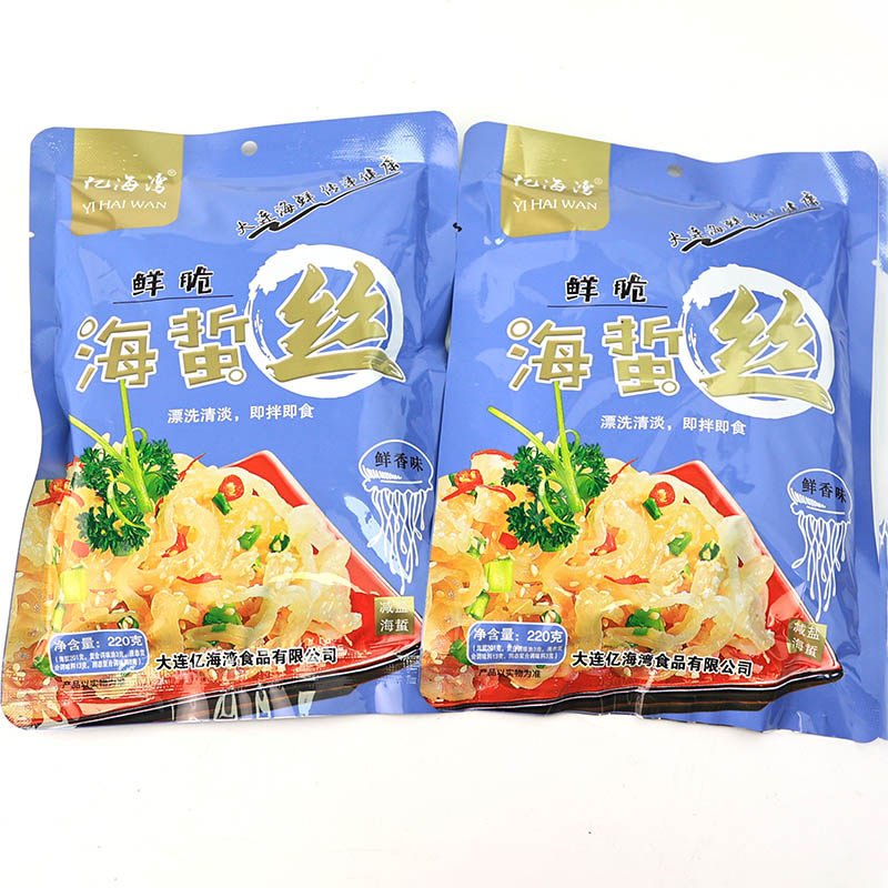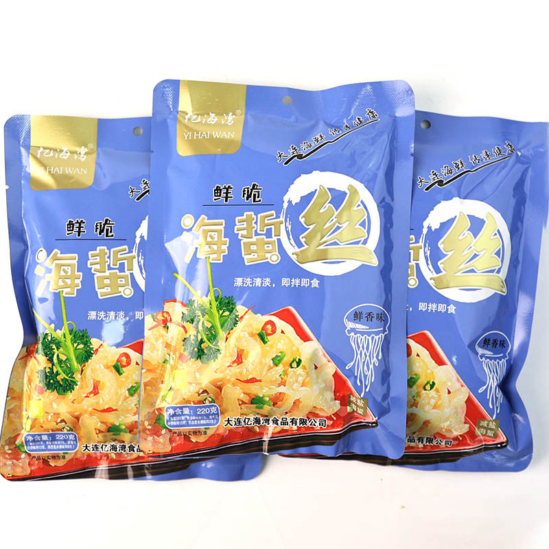 亿海湾海蜇皮220g即食凉拌菜带调料包虾米海蜇头下酒小菜大连特产