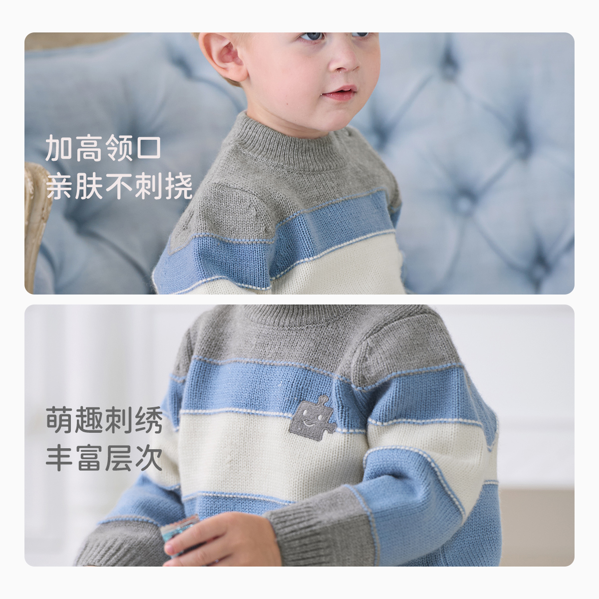 戴维贝拉儿童毛衣套头衫保暖男童针织衫女大童新款冬季半高领上衣